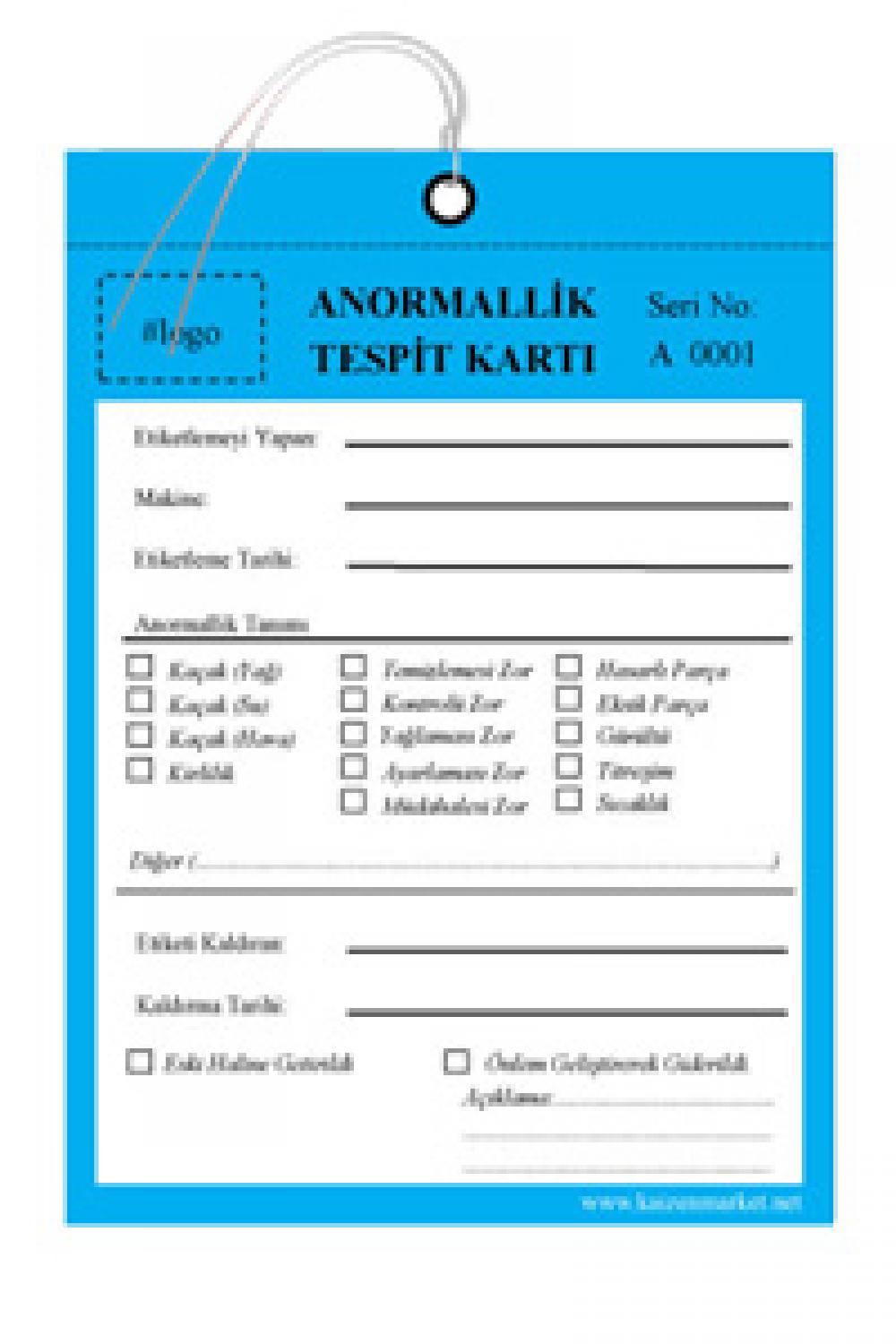 Otonom Bakım Bakımcı Hata Kartı Etiket